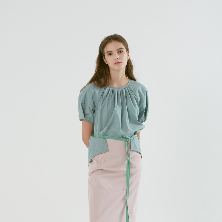 - 허리의 후면에 밴딩이 있으며 한쪽 사이드의 컨실 지퍼로 여미는 방식