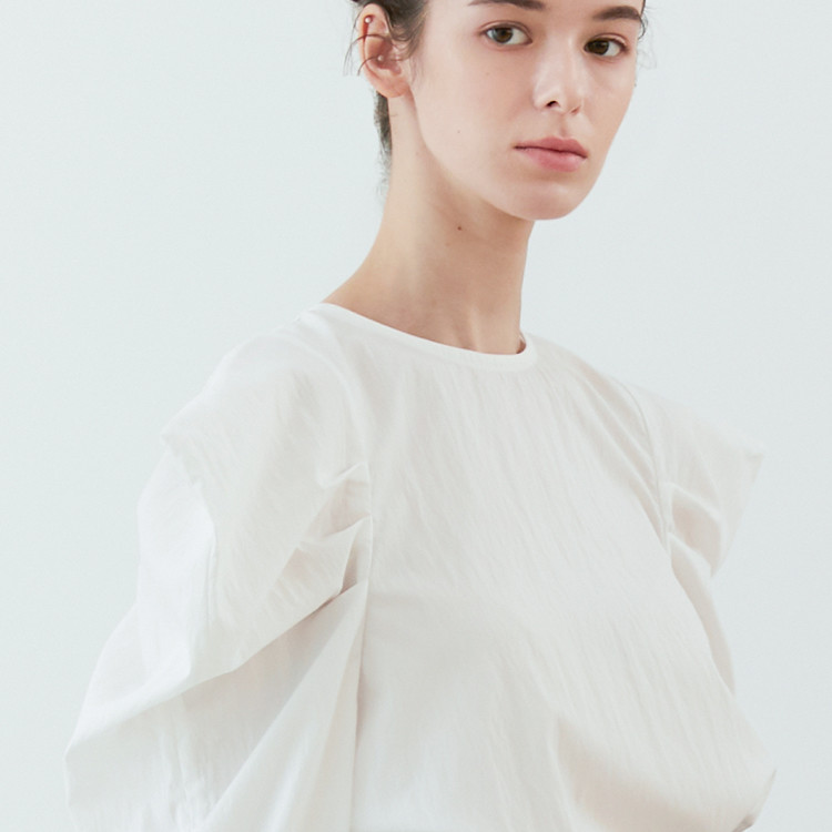 - 허릿단에서 이어지는 턱 디테일로 입체감있는 풍성한 스커트 라인