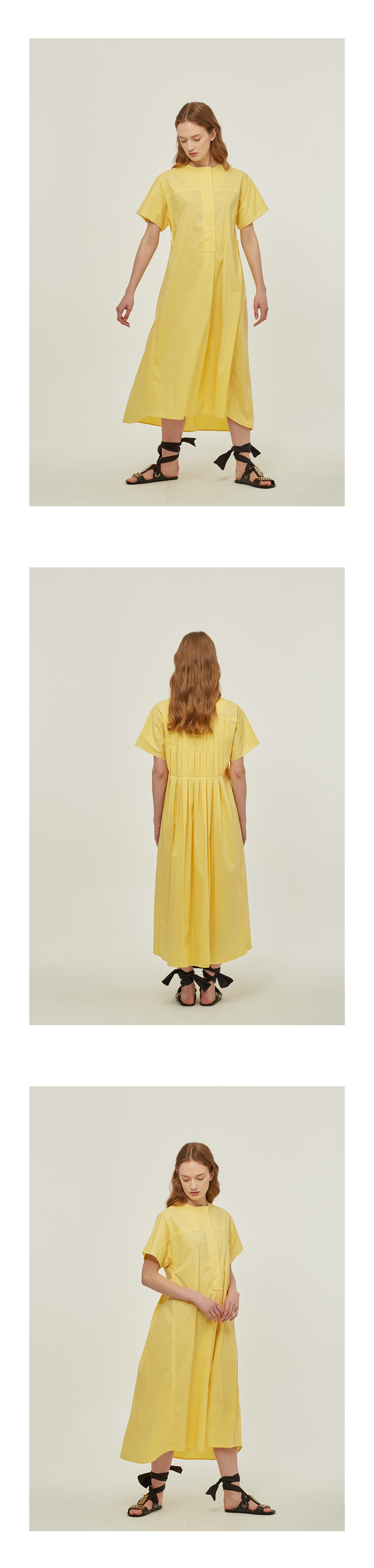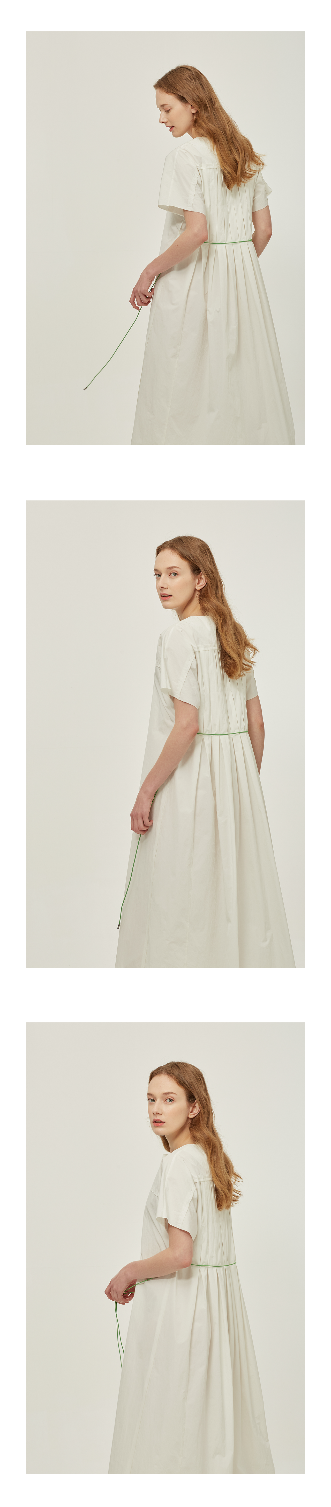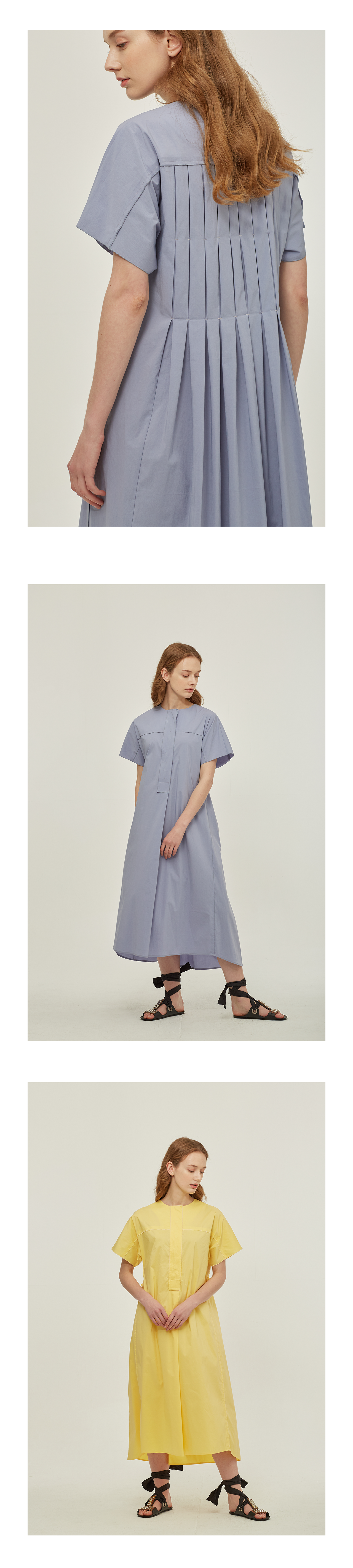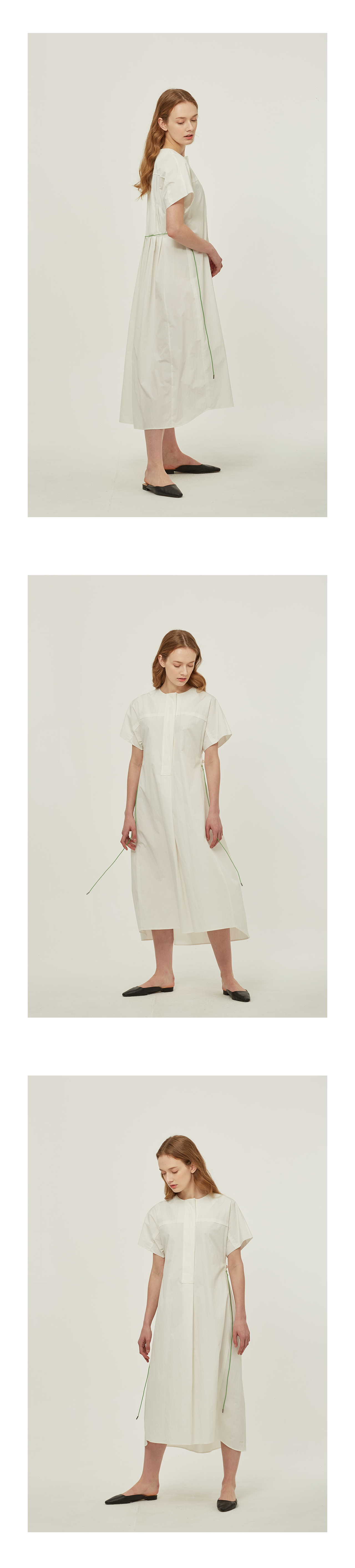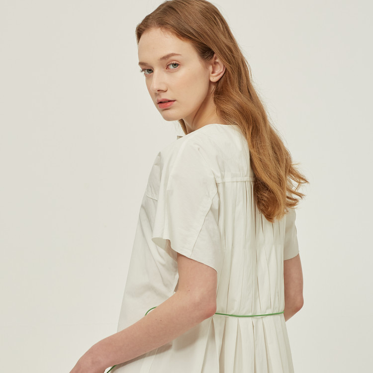 크리스피한 소재감의 면혼방 드레스