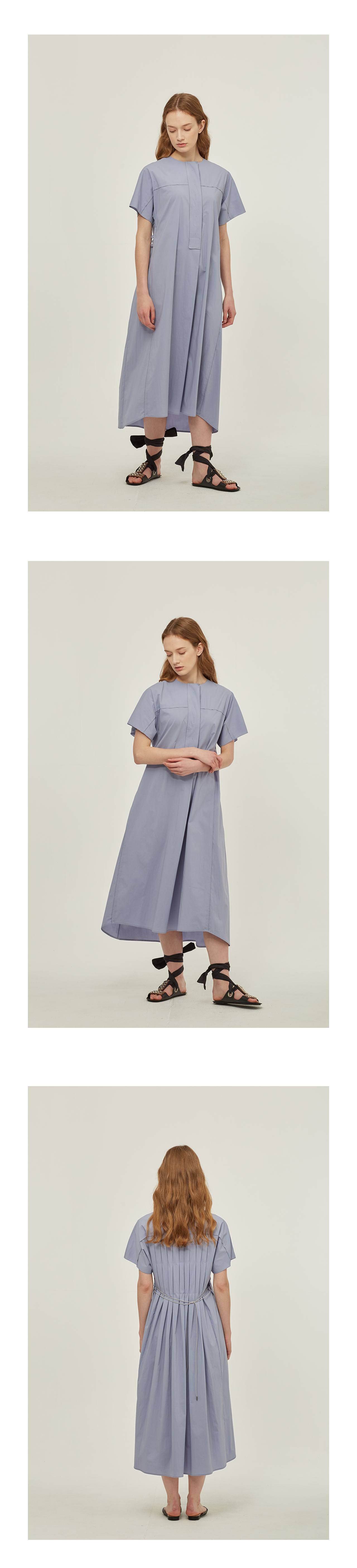 - 백 사이드에 볼드한 턱을 잡아 우아한 플리츠 느낌의 디테일