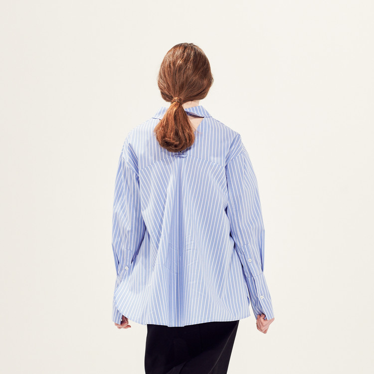 백라인 트라이앵글의 커팅 디테일의 루즈 핏 테일러드 셔츠