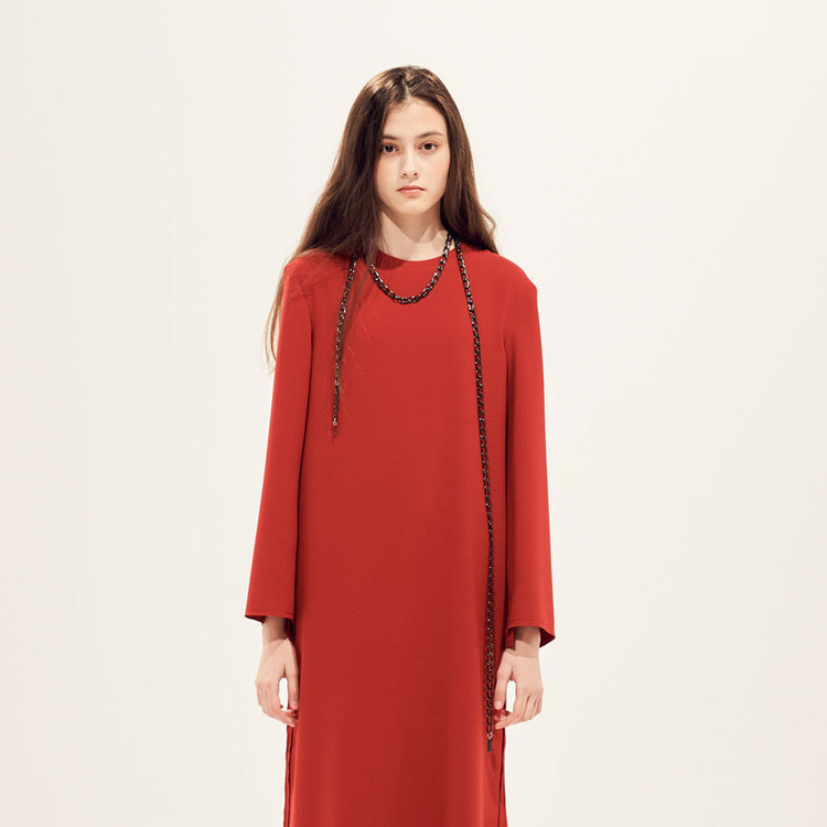 - 소매와 스커트 헴라인에 언밸런스 커팅의 슬릿 디테일