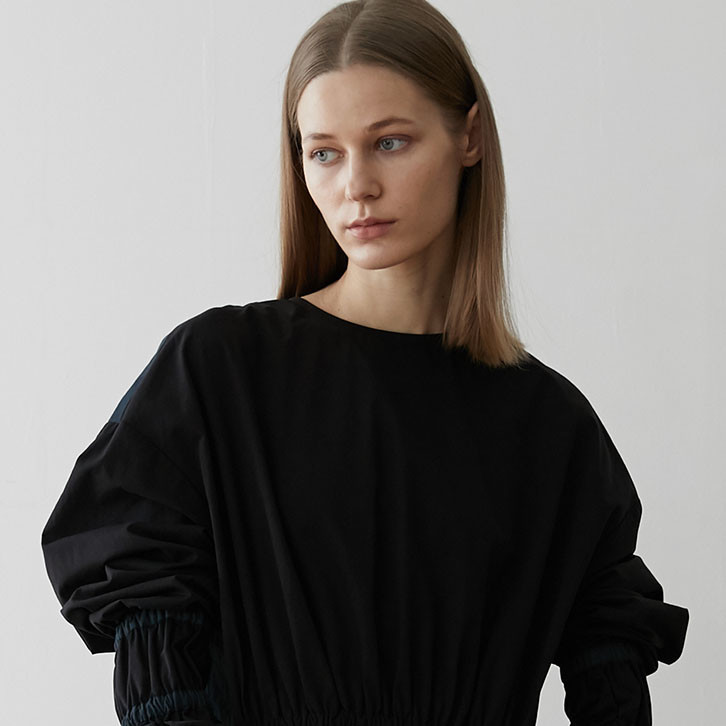 - 앞 뒤판 허리의 밴딩 디테일로 볼륨감 있는 실루엣
