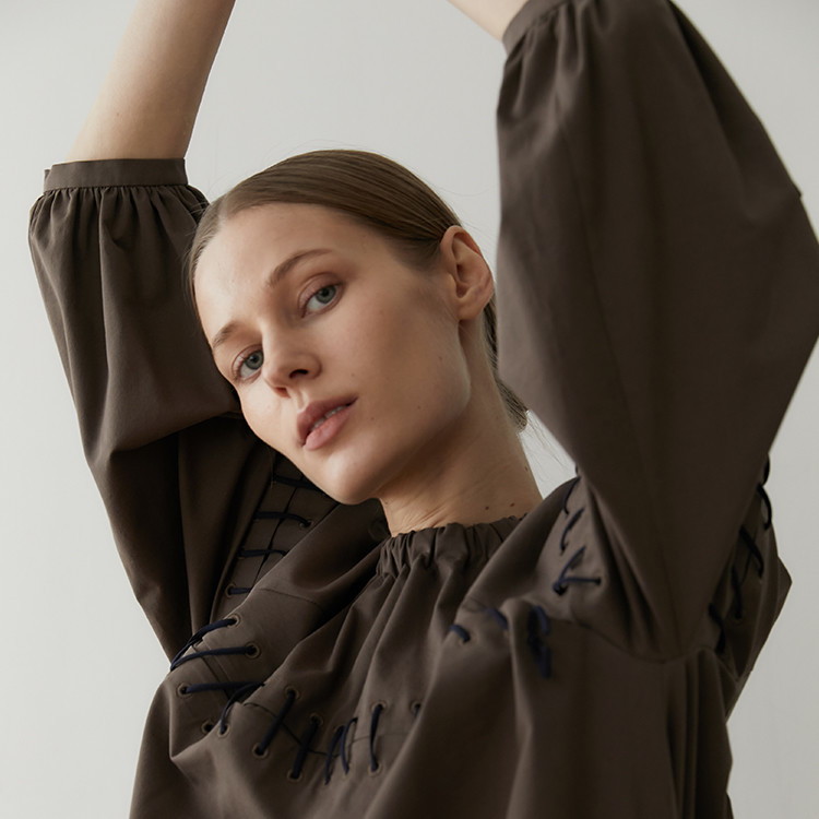 - 소매끝라인 오픈이 가능한 볼버튼과 셔링디테일로 볼륨감 있는 소매라인