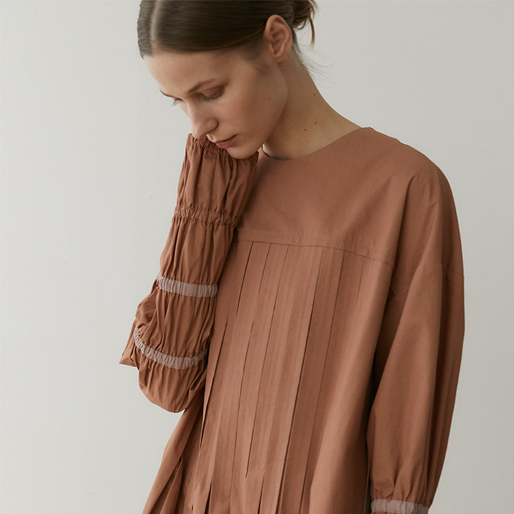 - 소매라인에 실크 롤링 밴딩으로, 턴업 시 볼륨감 있는 퍼프소매로 연출 가능